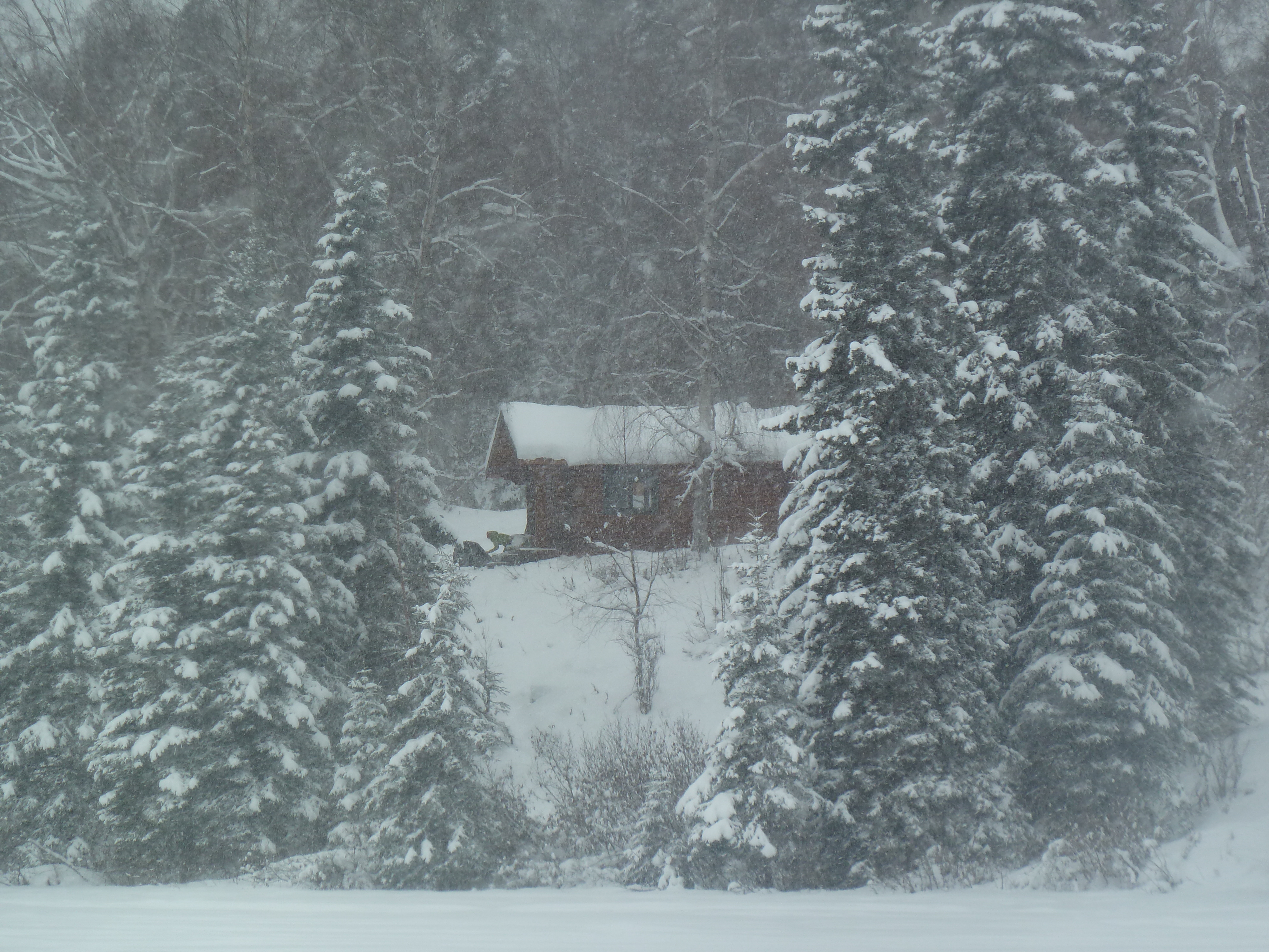 Crossing James Lake on the way to the cabin proved to be a low light, snowy situation, and although we were at the end, and pretty tired, there is nothing like seeing your destination on a perch!